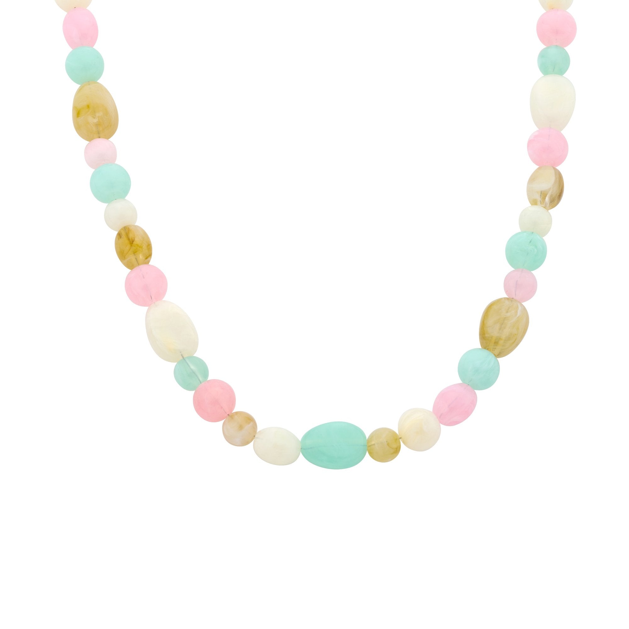 Ketting BIBA - Goudkleur Groen/Roze/Beige(40 + 8 cm)